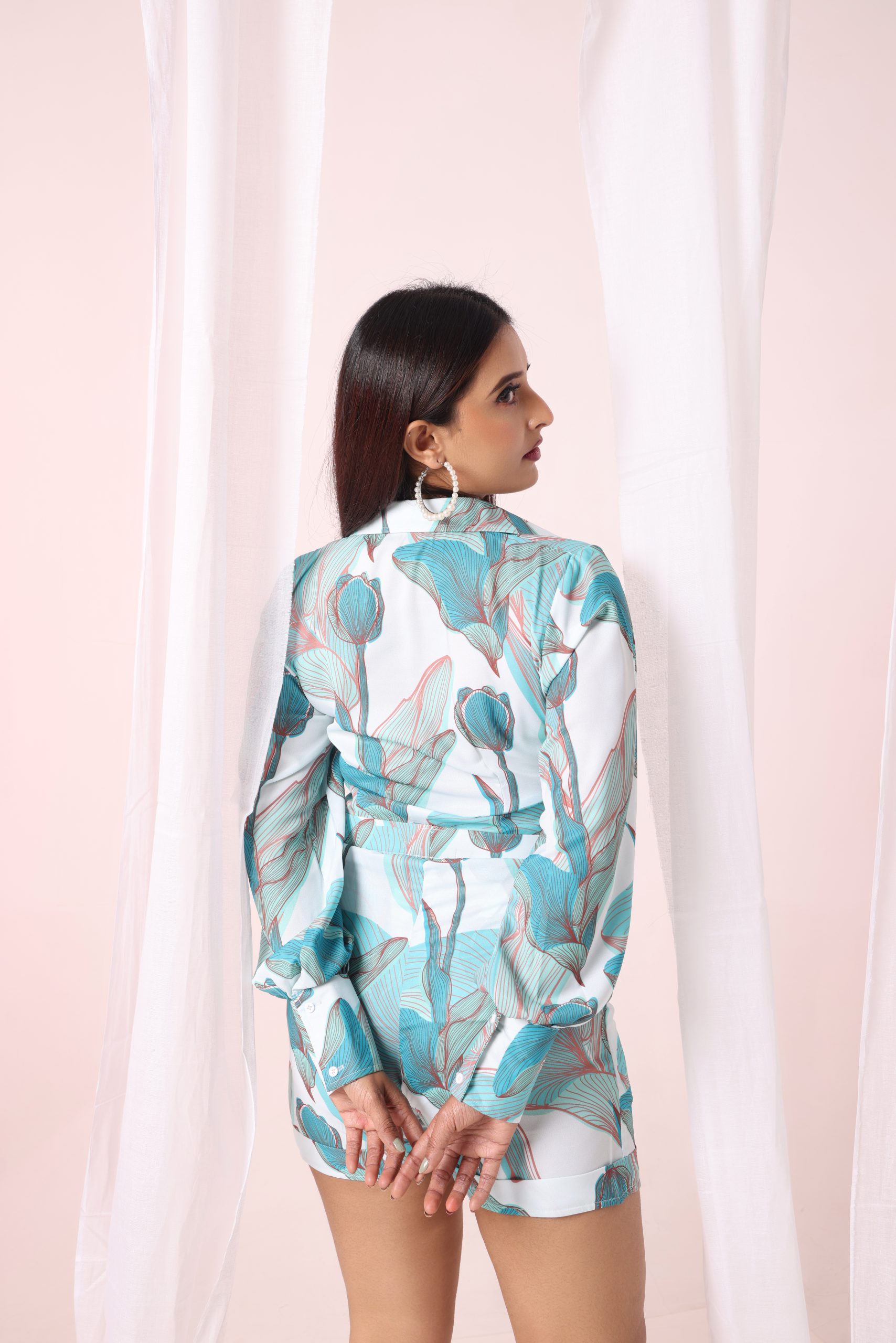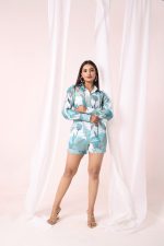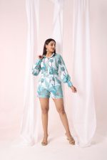 This co-ord set’s striking blue motif, which is evocative of the elaborate patterns seen in Mediterranean tiles, is its most notable characteristic. The outfit is elevated for both formal and informal settings by the delicate yet striking design, which lends a touch of artistic charm.