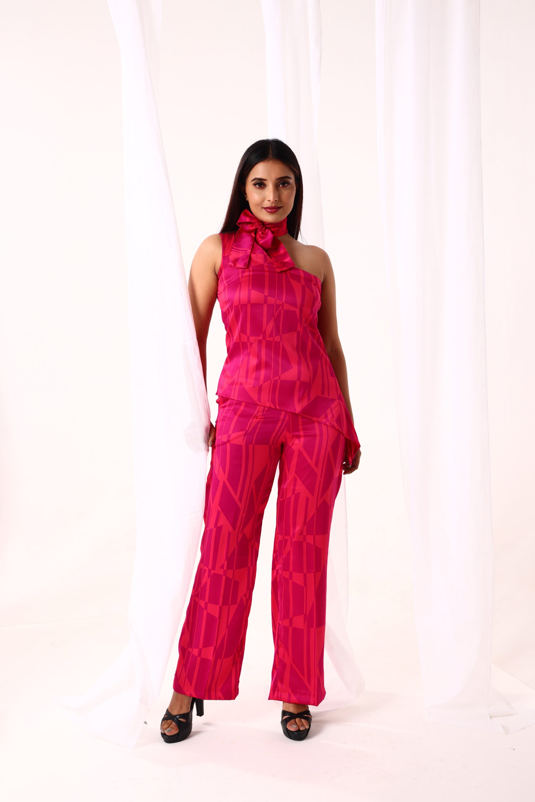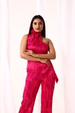 The elegant draping of the one shoulder design draws attention to your shoulders and neckline, adding a touch of appeal. Whether you’re going to a formal dinner, cocktail party, or wedding reception, this co-ord set guarantees that you’ll look effortlessly sophisticated.